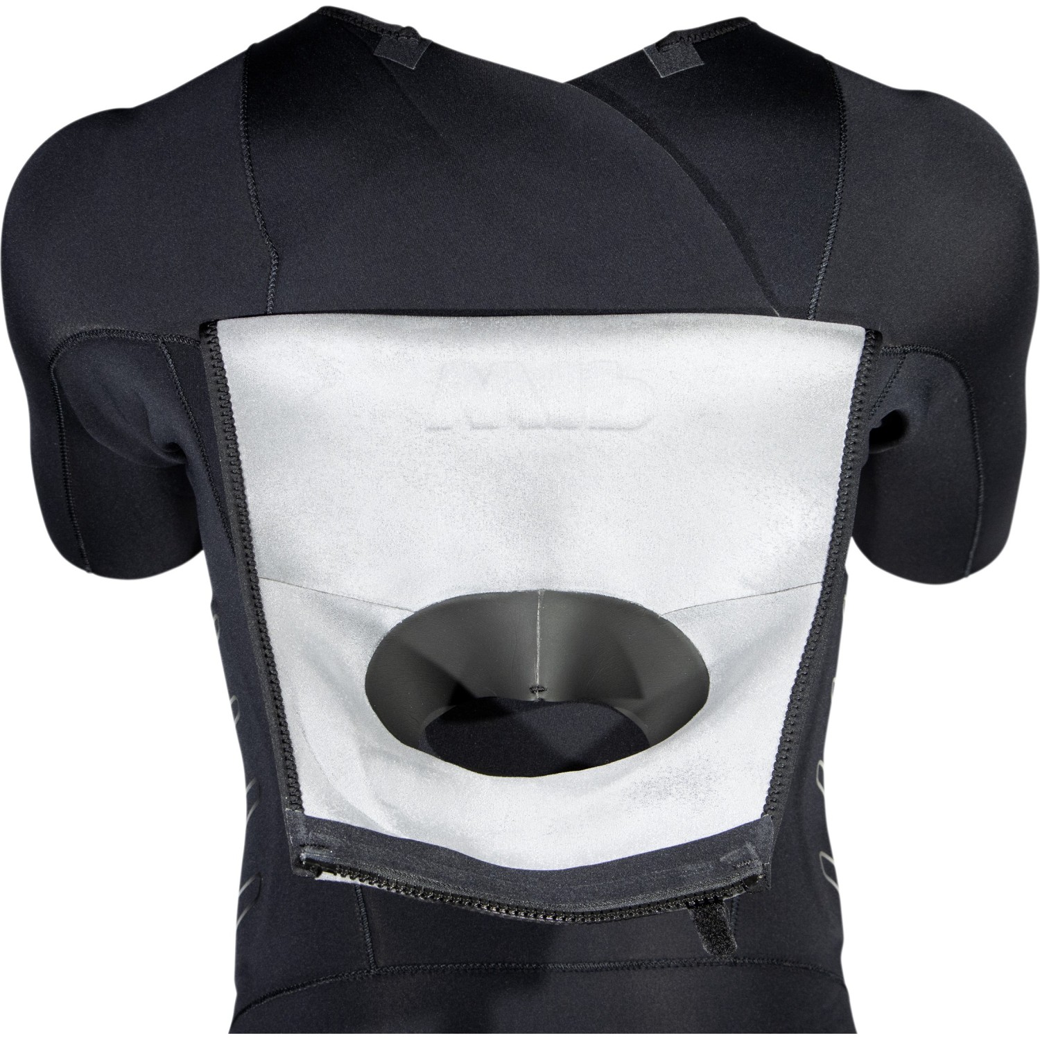 - Chest zip entry with one-piece neck construction helps reduce water flushing.