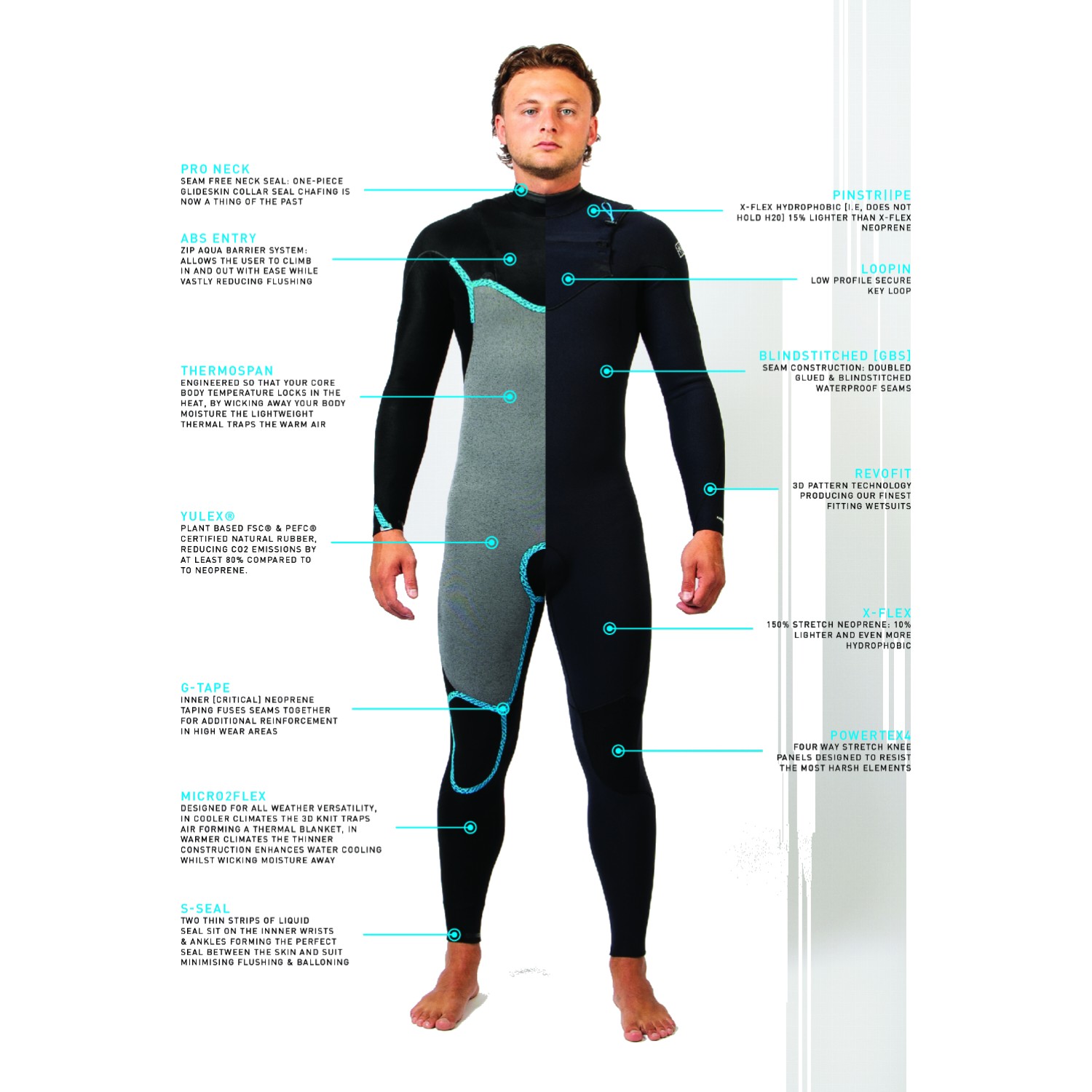 Constructed using YULEX® FSC® & PEFC® certified natural rubber, it offers a sustainable alternative to traditional neoprene without compromising stretch or durability. A streamlined chest zip entry reduces flushing, while thermal linings and reinforced seams ensure consistent warmth in demanding conditions.