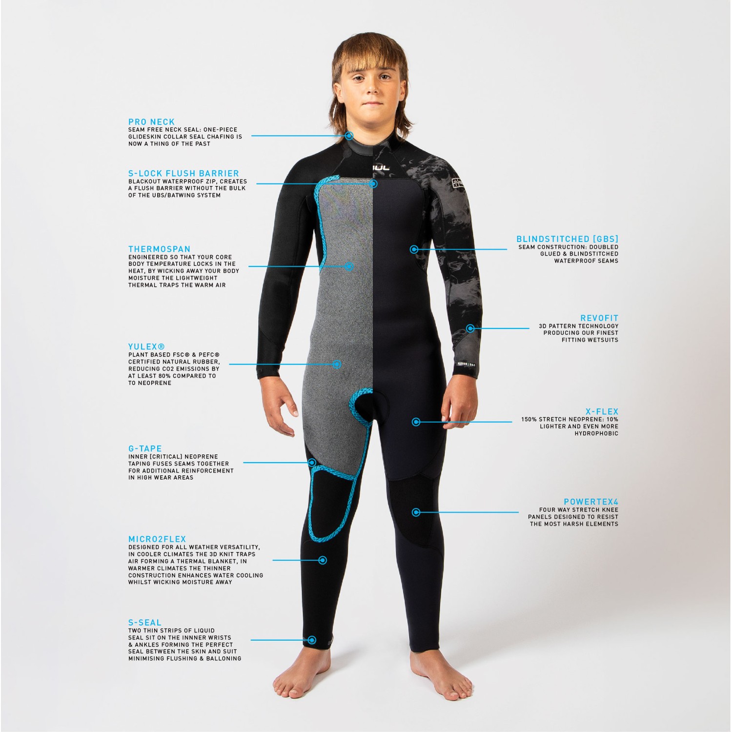 Gul Junior Flexor Yulex 5/4mm Backzip Wetsuit 2026 - Blue/Cyan FX1230$181.08$162.97