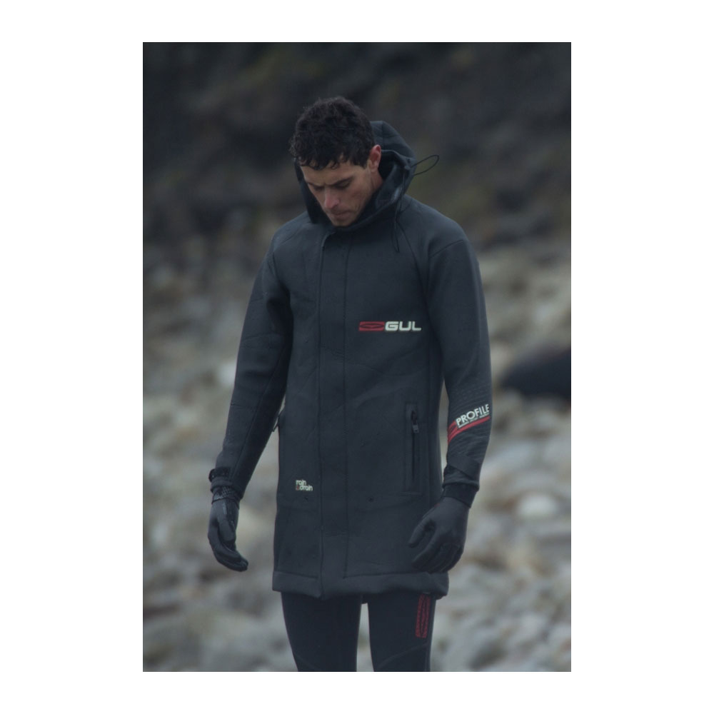 Perfect for keeping the howling wind and rain off your back whilst sorting your watersports kit on the beach. Mesh neoprene prevents wind chill, whilst YKK zippers and storm flap stop water from penetrating. Features zip closure pockets with the Gul Rain Drain system.