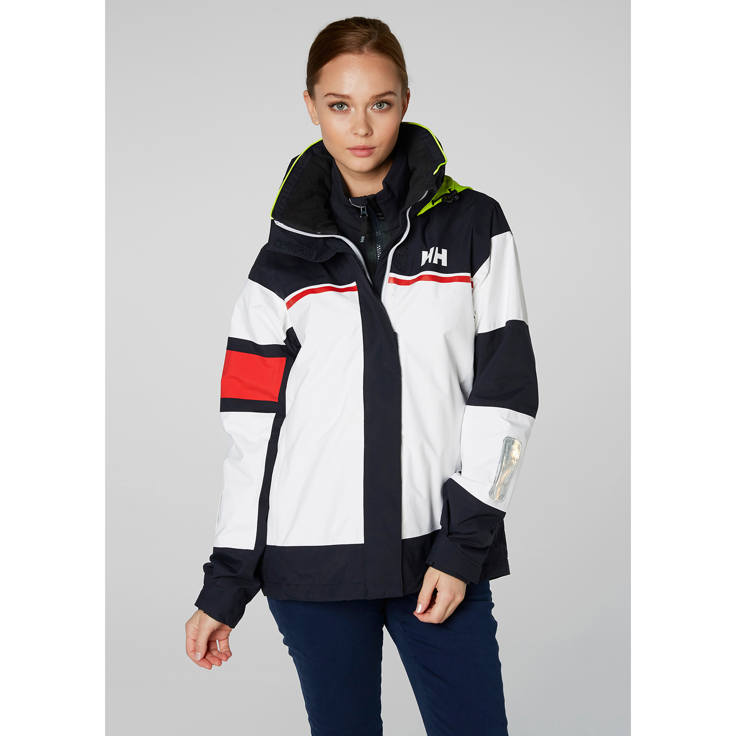 Salt Light jacket is a lighter Waterproof breathable Jacket made with design references to the Iconic Helly Hansen flag stripe and designed for versatile use on the water.