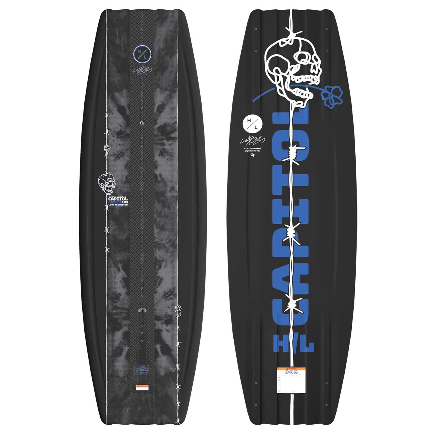 The Capitol Loaded Wakeboard is Cory Teunissen’s pro model, designed for riders chasing explosive pop and precision control. Built with Hyperlite’s advanced Loaded Construction, it combines a lightweight PVC 100 Core, 12K Carbon Stringers, and dual 3mm fiberglass rods running tip to tail for maximum strength and responsiveness. The Blended 3-Stage Rocker generates huge lift off the wake, while the Dual Concave Base keeps the board fast, stable, and smooth when carving. A lightweight, high-performance board built to match the demands of one of the sport’s best riders.