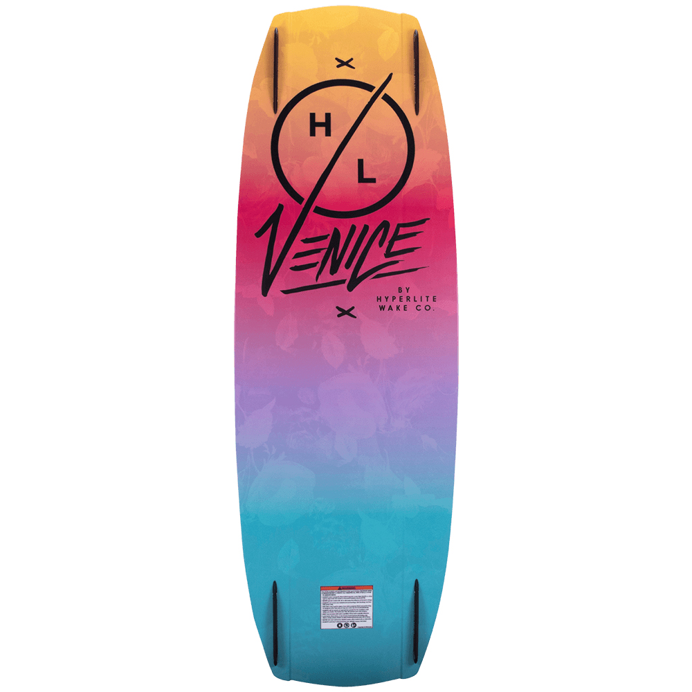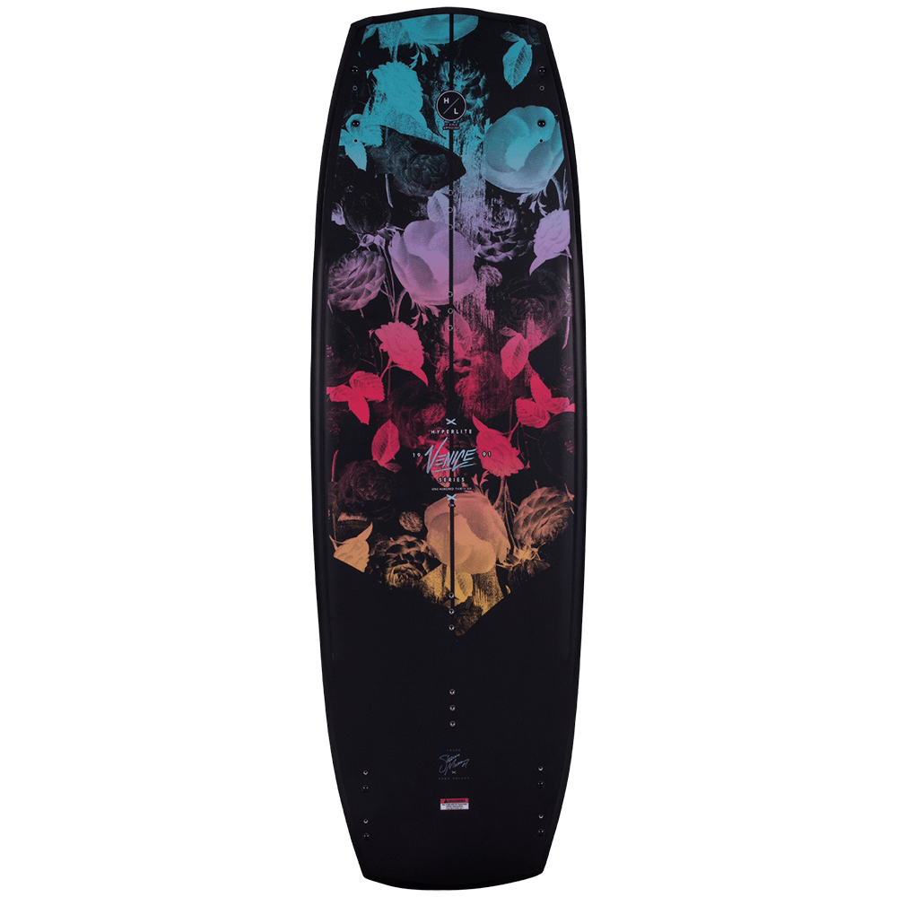Shaun Murray and Greg Nelson agree that a solid foundation greatly increases a rider’s learning curve. Hyperlite introduces the Venice, shaped specifically for creating that base and solid foundation. The Venice has a wider overall profile built atop a continuous rocker, delivering a smooth carving board that gets more pop off the wake due to its increased surface area. The Variable Edge Design is forgiving between the inserts but then sharpens towards the tip and tail, providing the strong edge hold necessary for generating speed into the wake. The Venice is simple and both Murray and Nelson believe that “Less is More” in their shared shaping philosophy. The center of the base is clean, clean water flow creates a smooth ride and softer landings, the dual tunnels easily allow water to enter and exit at the Venice’s tip and tail. Hyperlite’s Satin Flex ensures the board responds quickly and lands softly, and we guarantee you’ll feel at ease on the Venice.
