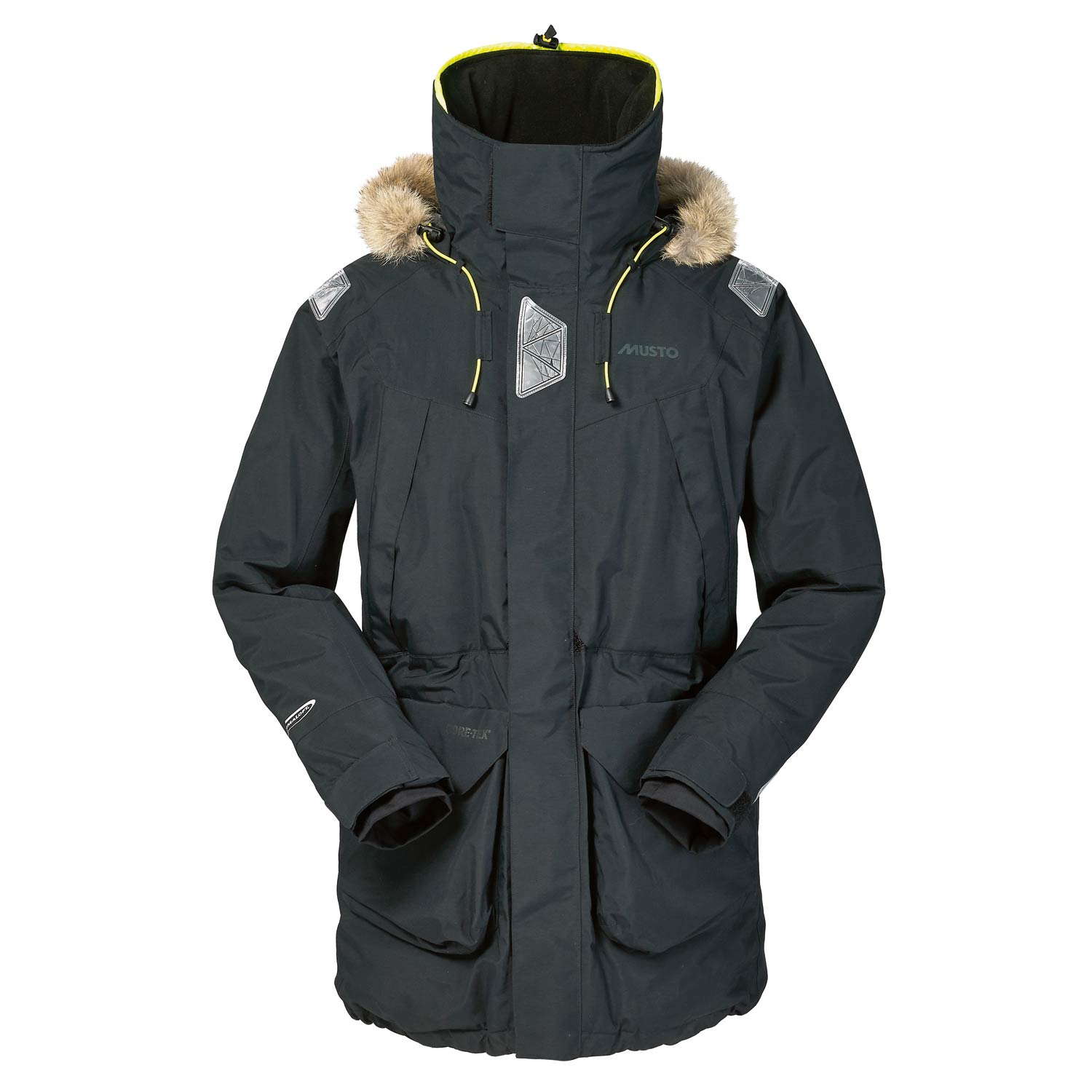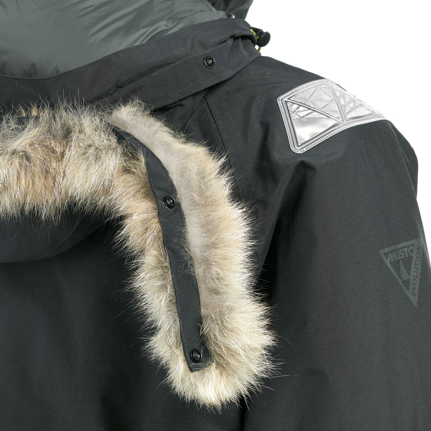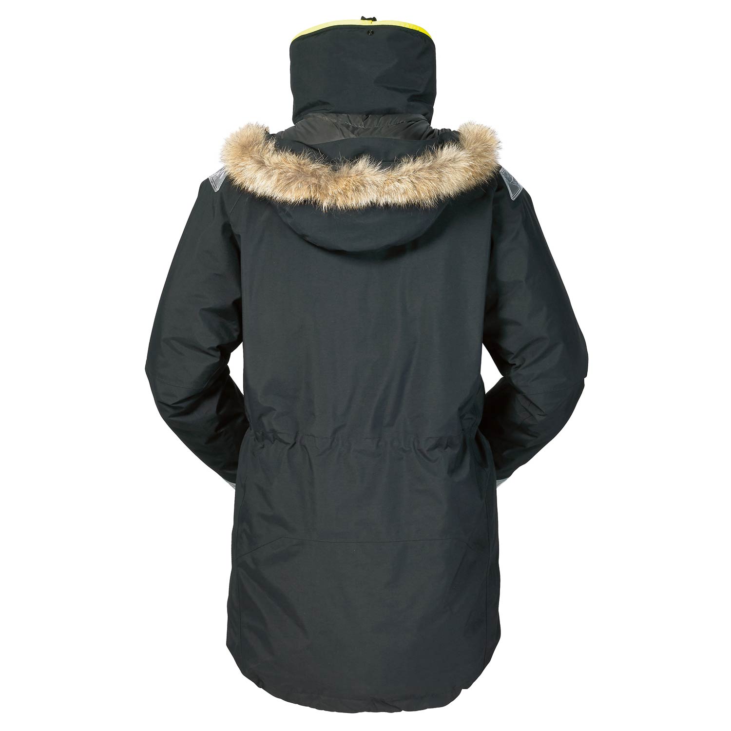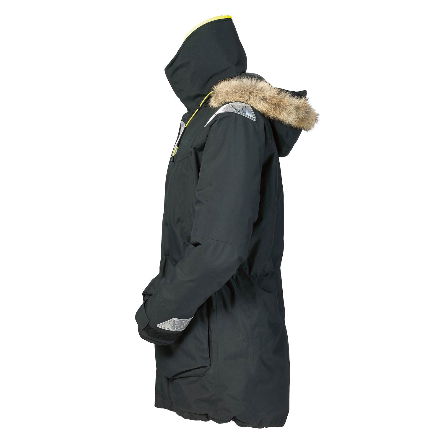 - Three-way adjustable hood features responsibly sourced coyote fur trim which does not retain water or freeze in wintry conditions
