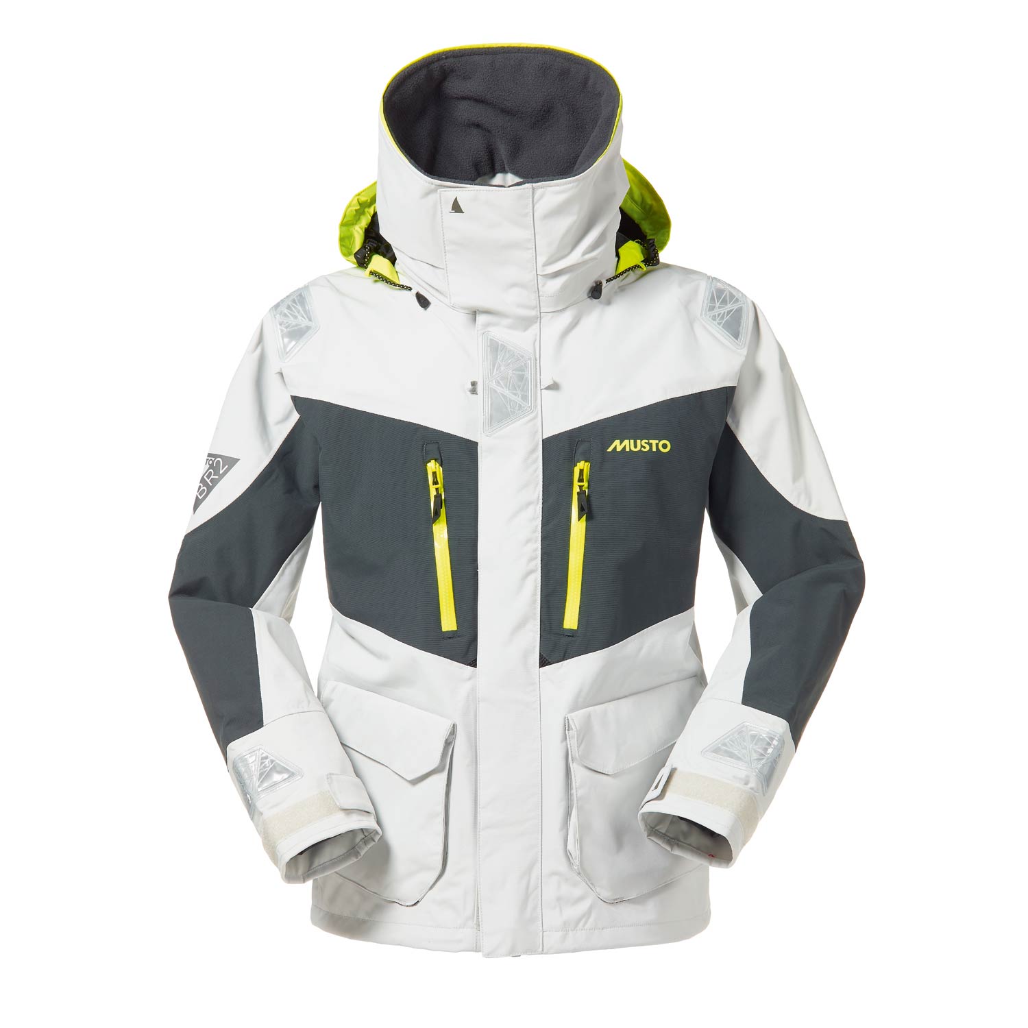 With features tested by elite offshore sailors, every detail has been carefully considered. Truly waterproof and breathable, this is foul weather protection for sailors spending a considerable amount of time on the water. Double cuffs, the adjustable hem, the double storm flap with a drainage channel over the zip, the high collar and the roll away fluorescent hood work together to keep you completely dry. The sleeves are articulated to allow complete freedom of movement, the fleece lined collar, hood and hand warmer pockets add warmth, and the prismatic reflectors provide visibility for safety in low light. This jacket really delivers.