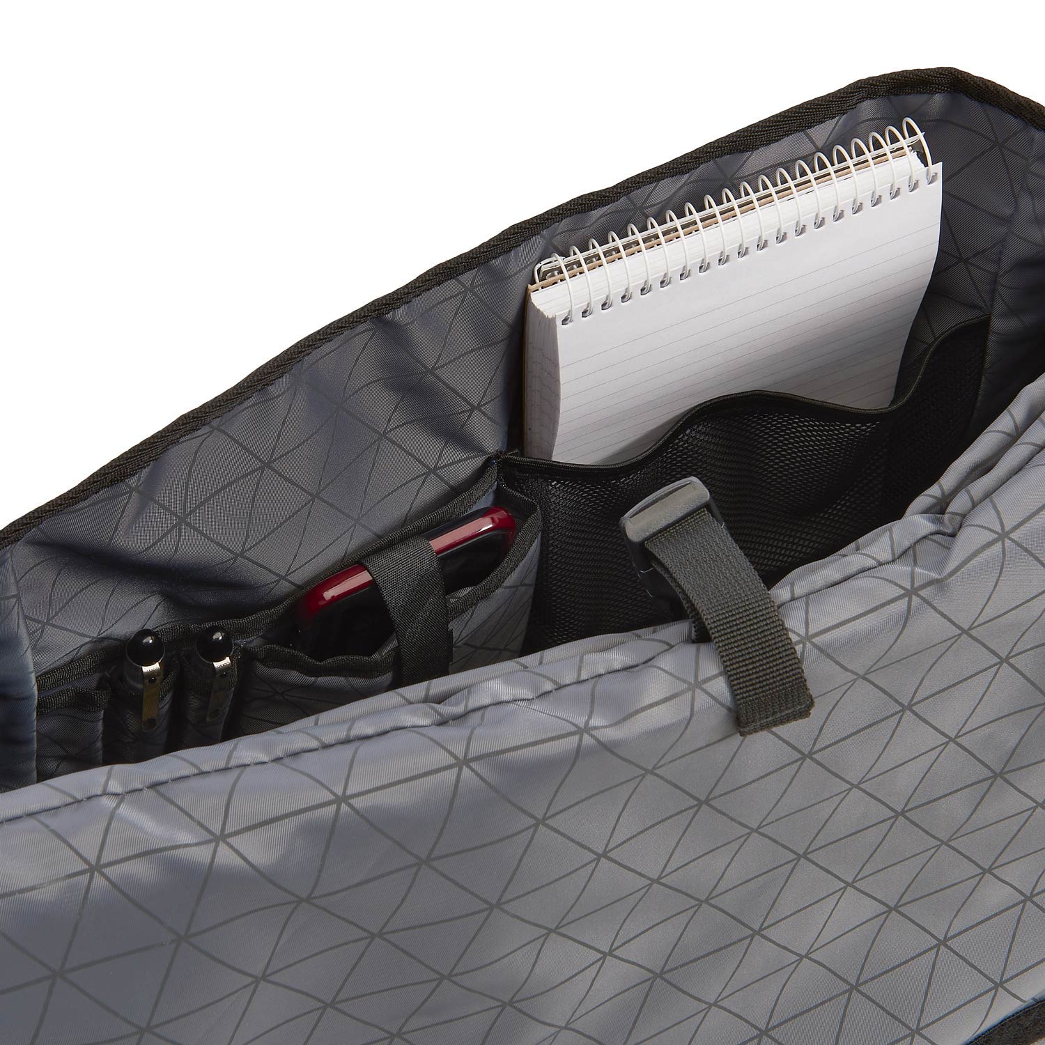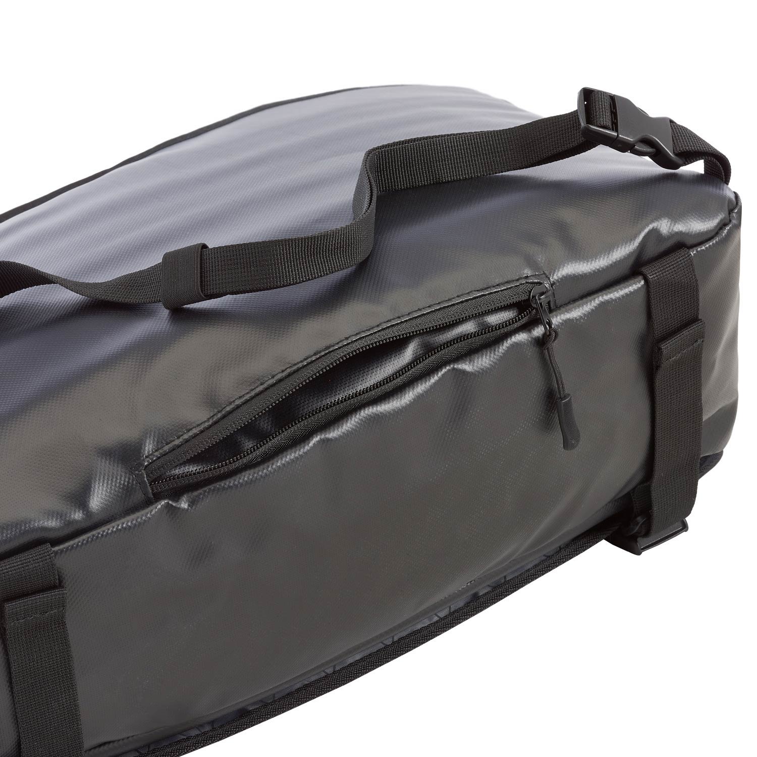 • Slip pocket with hook and loop for securing to roll-on bags