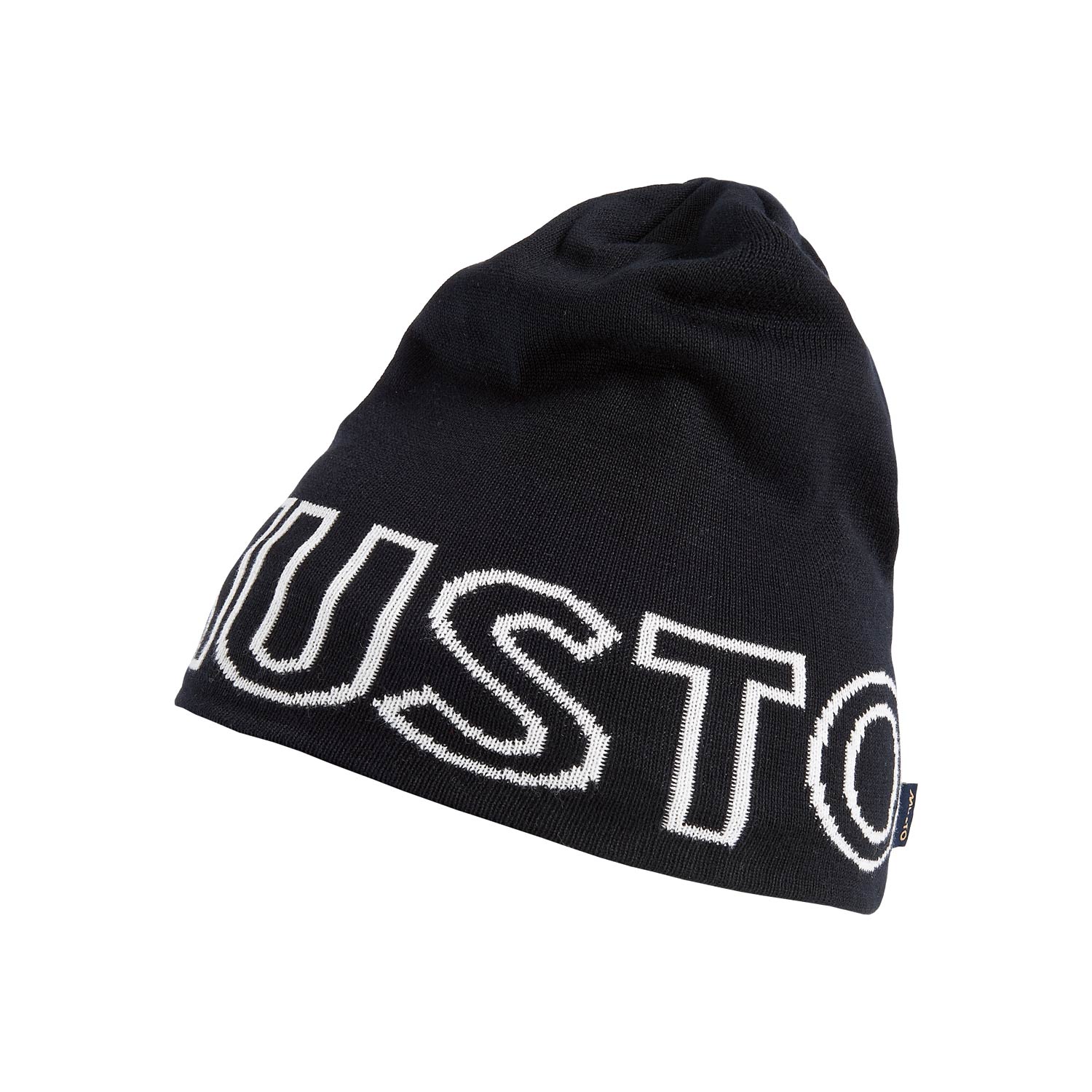 Knitted cotton beanie with a soft, lightweight hand feel in an oversize slouch style with large jacquard MUSTO logo.