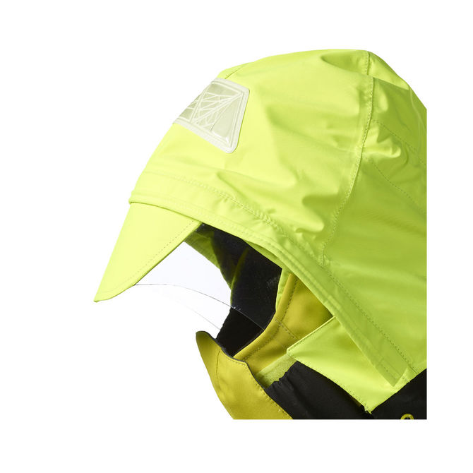 • Fluorescent, fully adjustable roll-away GORE-TEX® fabric hood with Paclite® product technology for complete protection even over helmets; packs into a stretch hood pod