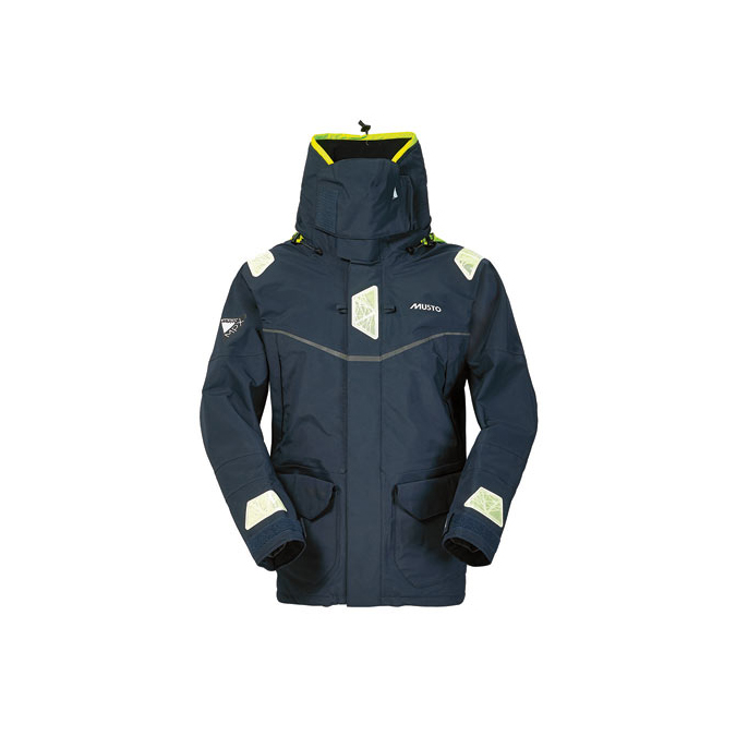 Constructed with a 3-layer GORE-TEX® Pro laminate custom engineered for MUSTO, this foul weather jacket is built for prolonged offshore sailing. A favourite jacket of offshore sailors, its high collar and spume visor, shaped for maximum vision, shield you against the rain and spray. Innovative photoluminescent strips that glow in the dark and a fluorescent GORE-TEX® hood make you visible even in low light. Large fleece-lined pockets keep your hands warm in the bitter cold and cargo pockets with a water deflecting closure and mesh drainage keep your essentials accessible. The mesh lining of the jacket and articulated elbows and underarms provide comfort and ease of movement for every offshore adventure. Stay safe with the lifejacket attachment points.