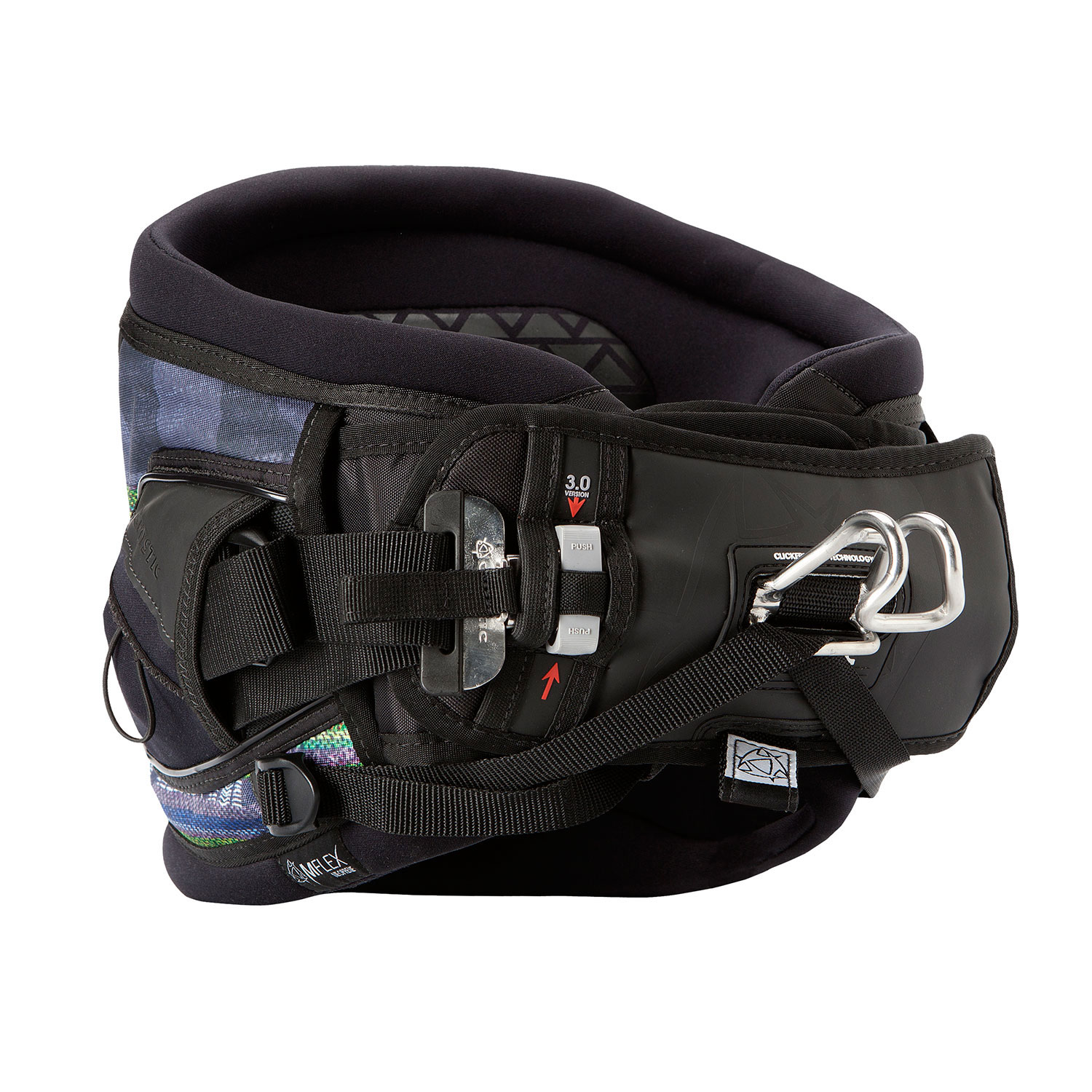 The edges of the harness are made of folded neoprene. The double neoprene ensures high comfort and prevents any discomfort from the stiffer parts of the harness.