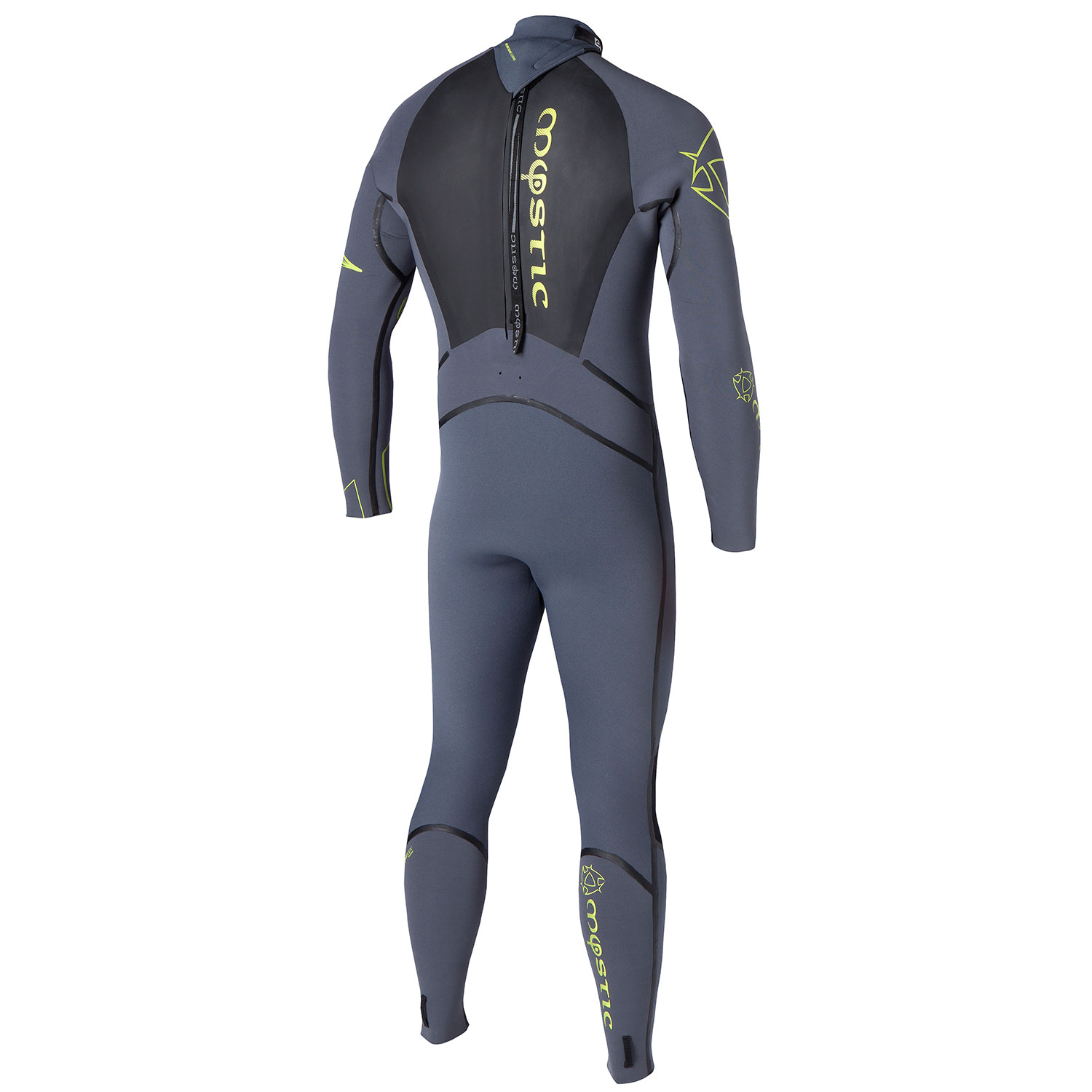 A neoprene back panel without collar, prevents water from entering through the zipper and neck.