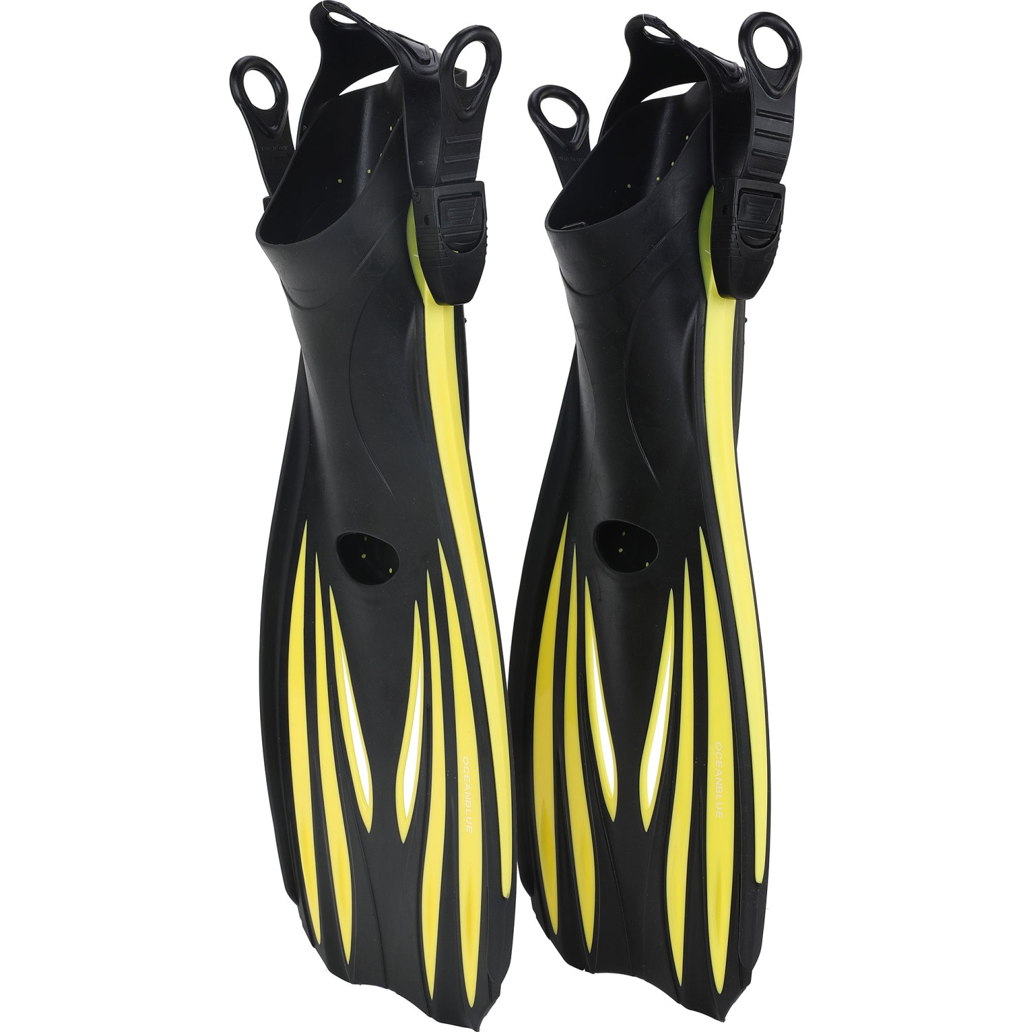 - Long blade fins designed for strong propulsion and efficiency