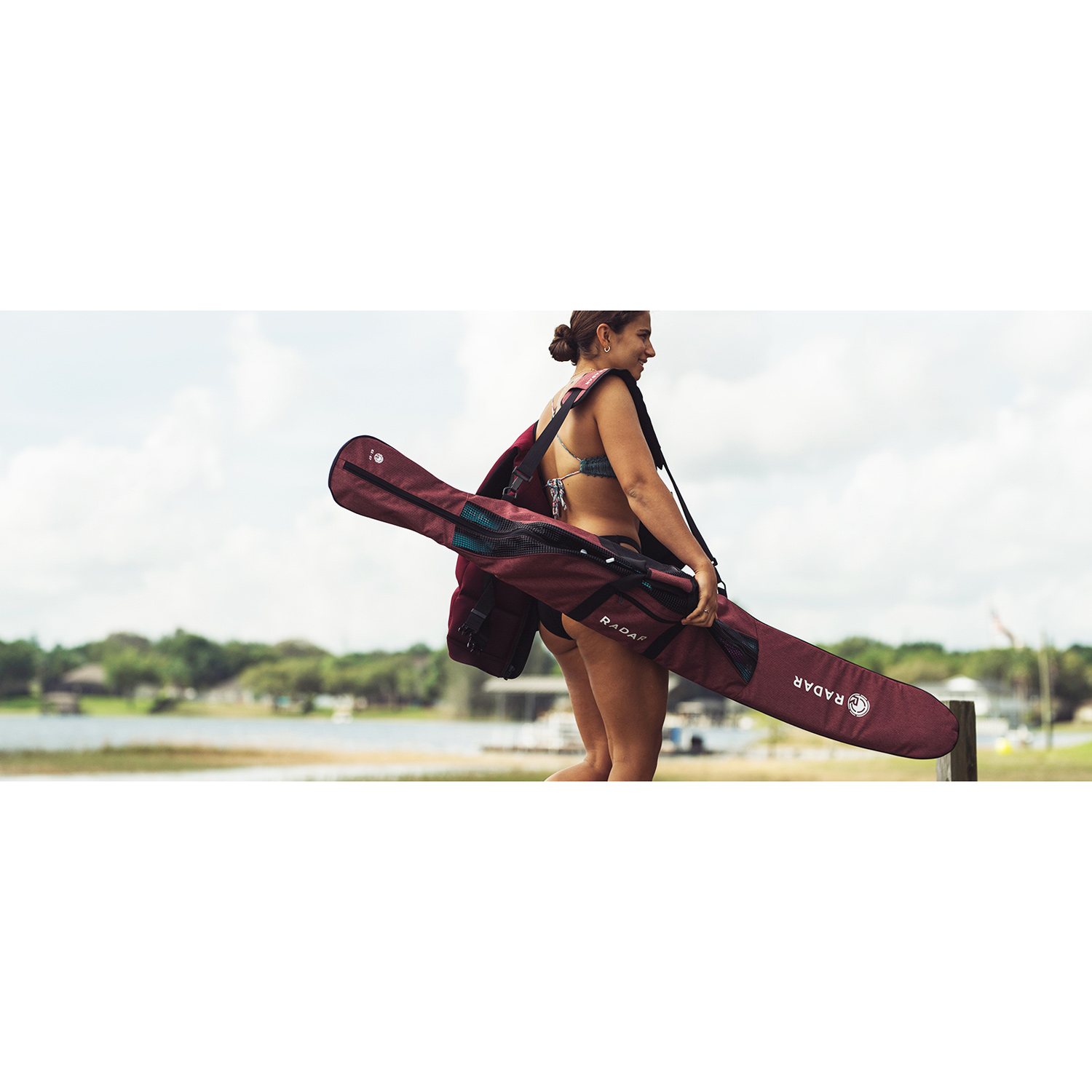 Radar Women's Padded Slalom Waterski Bag in Black/Pink comes with the following features: - Top Entry Zipper for easy access to your gear. - Oversized Boot Zone to accommodate various ski boot sizes. - Inside Storage Pocket for organizing small items. - Breathable Mesh material to allow airflow and prevent moisture build-up. - Fits all Radar Skis 67” and shorter, with a suggested range of 63-67 inches.