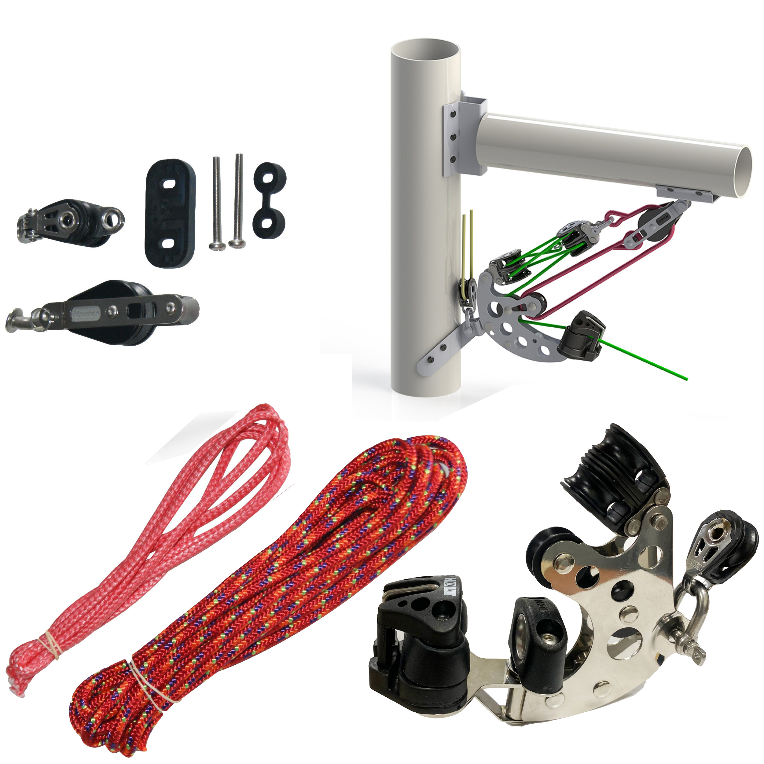 Holt Laser Vang Kit including all the blocks and ropes needed to upgrade your boat. Vang Kit: 1 x Vang Unit With Cleat (additional wedge for optional higer cleat angle with fastenings)