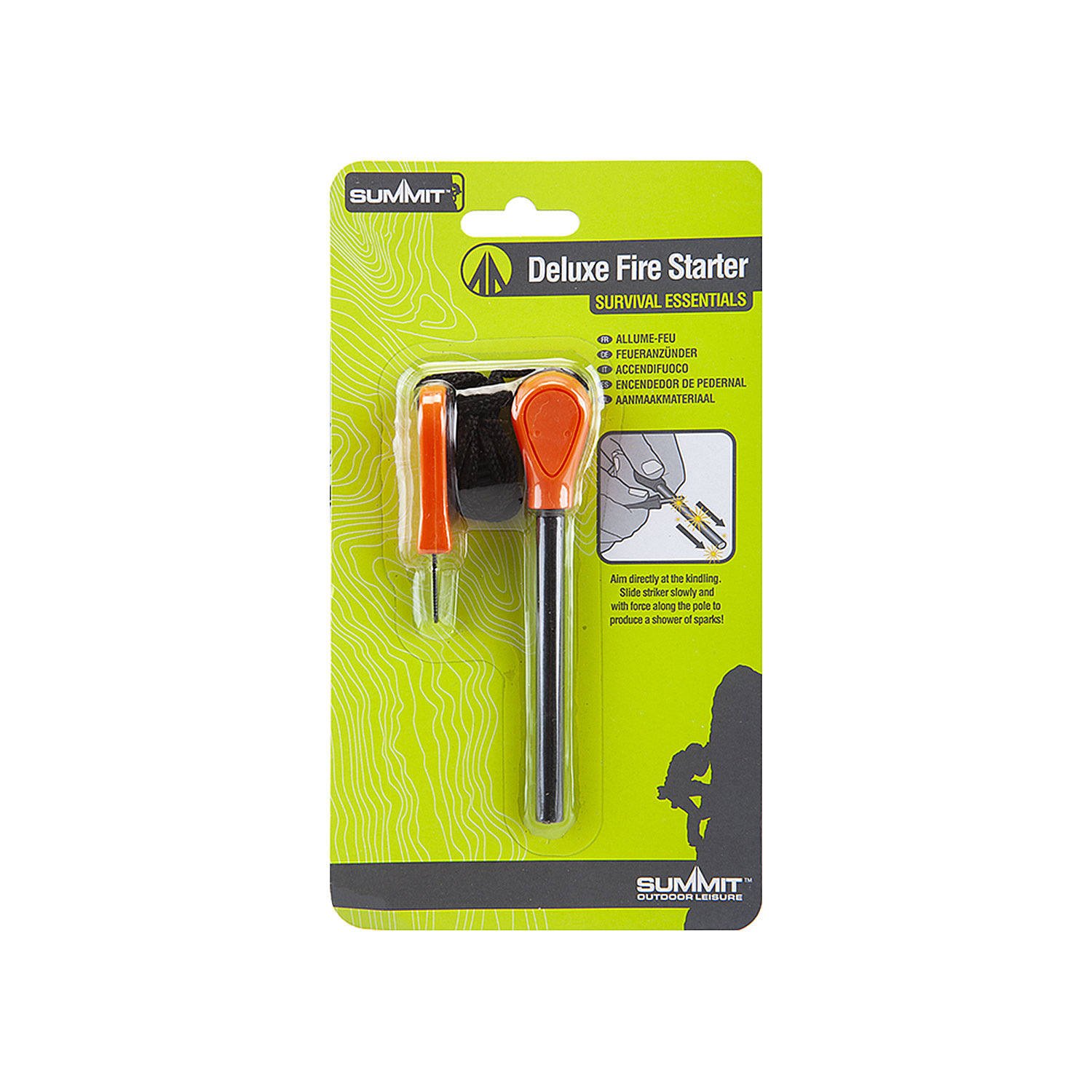 Deluxe Fire Starter; lights campfires, gas stoves and gas BBQ's. Extremely reliable and ideal for lighting a fire in damp conditions. Simply slide the striker along the fire starter to produce sparks.