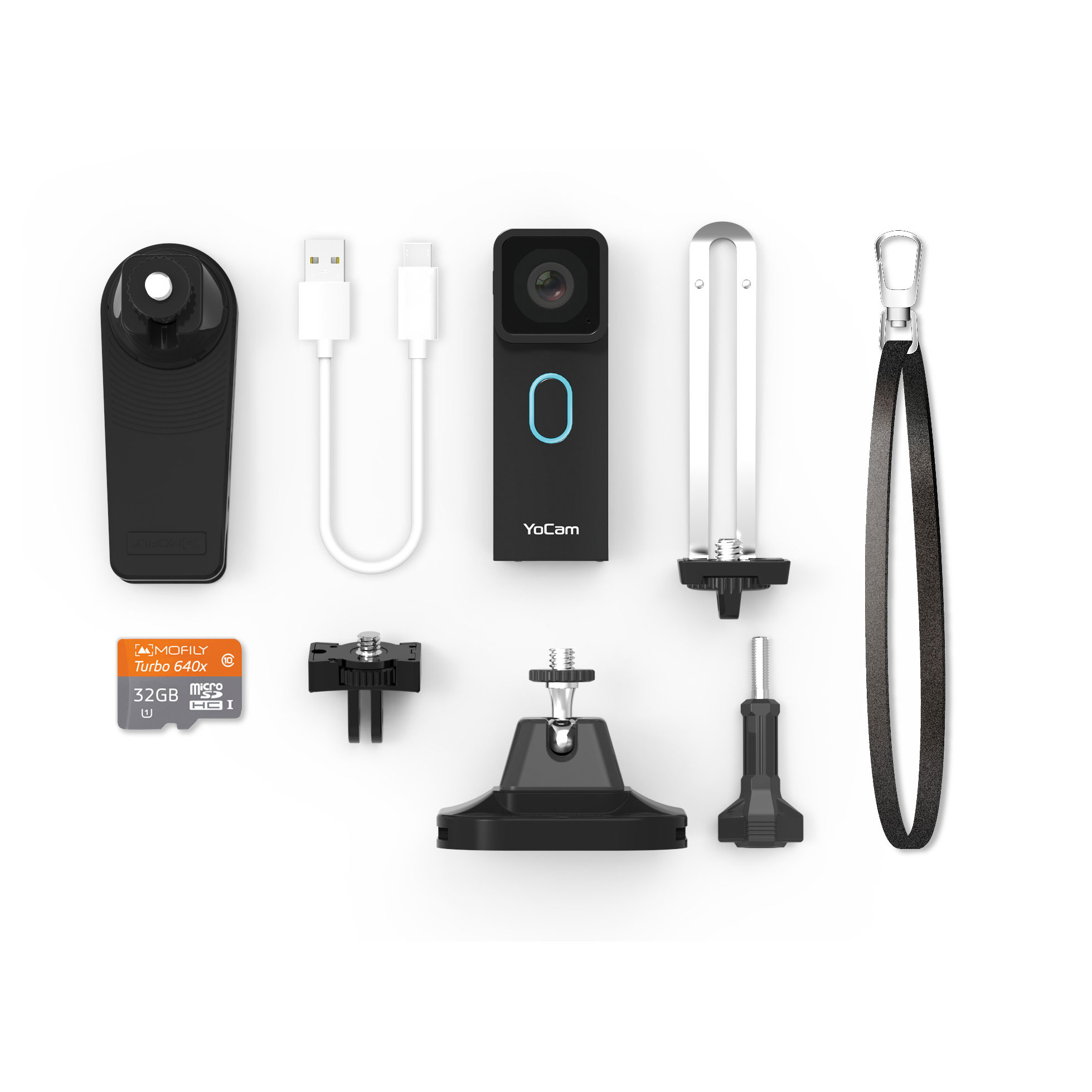 YoCam Action Camera & Deluxe Accessory Pack & 32GB microSD - Black