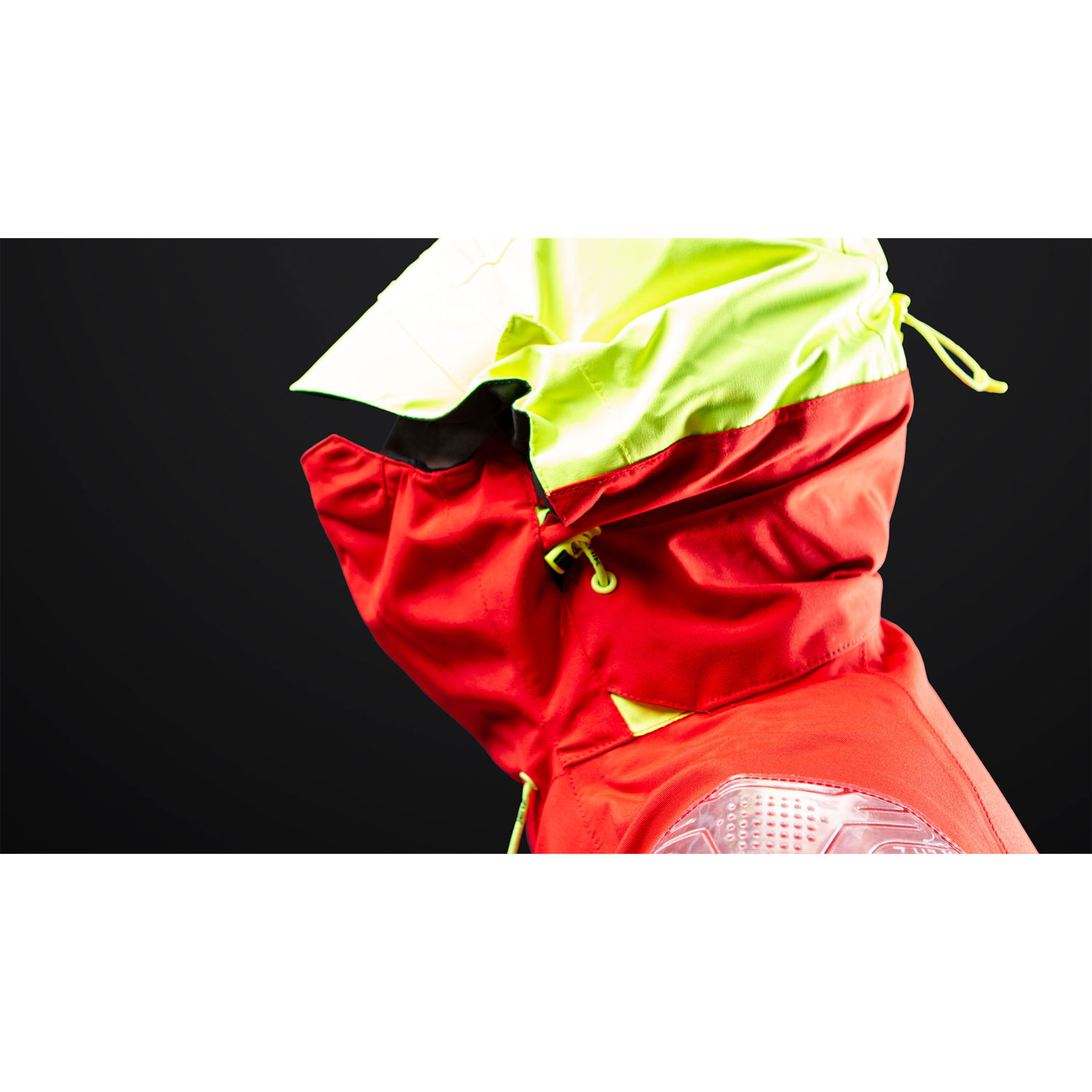 • ADJUSTABLE HOOD With stow away pocket, plus an integrated face shield